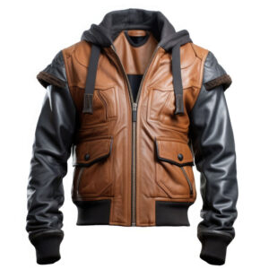 Men’s Brown Black Genuine Hooded Aviator Leather Jacket
